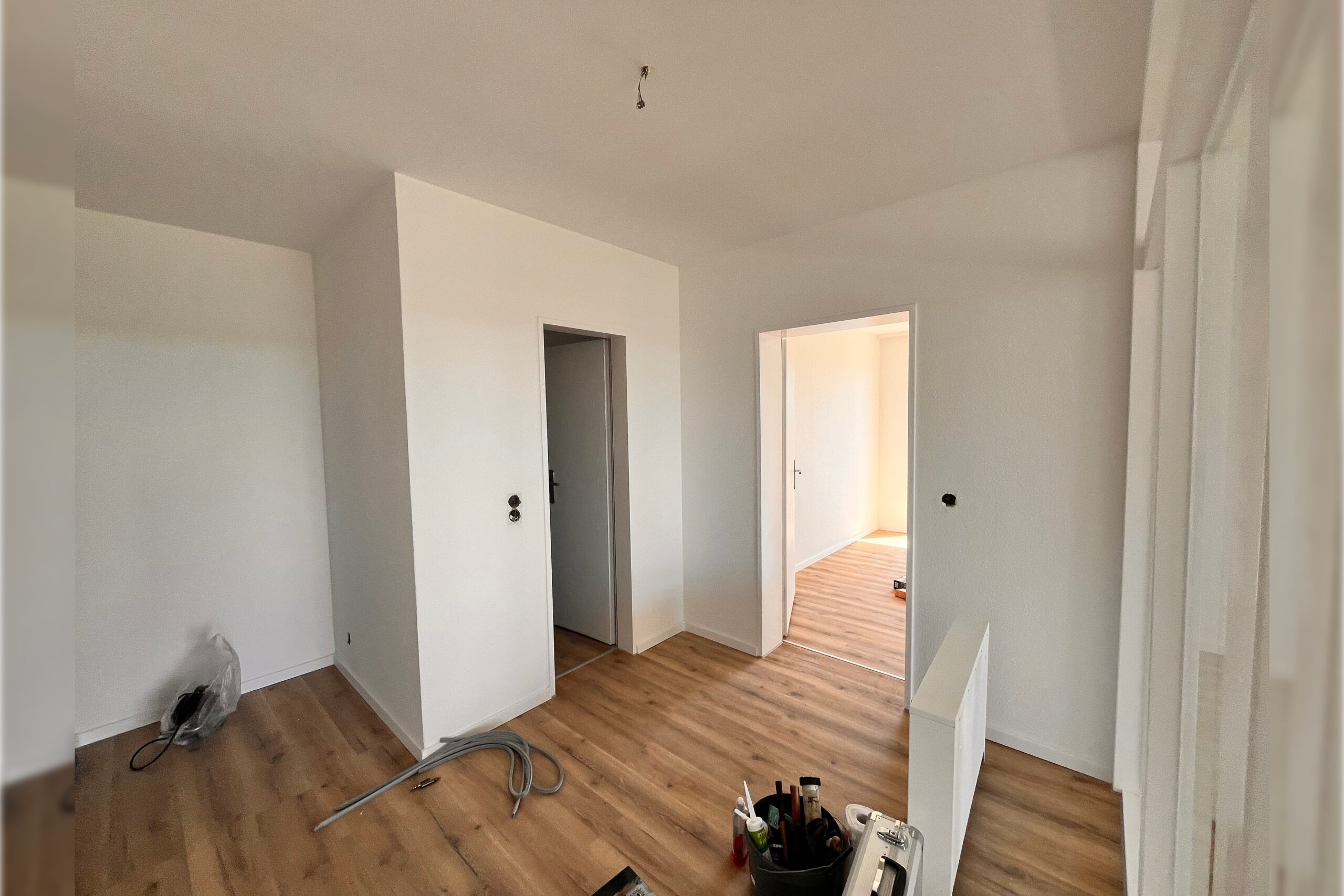 Die neue Glasabtrennung zum Flur stellte kein Hindernis dar: Die glückliche Käuferin war von der gesamten Wohnung so begeistert, dass sie gleich zweimal dagegen lief. Ganz klar: „Liebe auf den ersten Blick“.